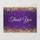Carte Postale Faux Pailleté Or Pailleté Violet Royal Merci
