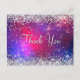 Carte Postale Faux paillettes argentées Rose Chaud Céleste Merci