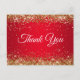 Carte Postale Faux paillettes dorées scintillantes Merci Rouge C