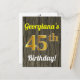Carte Postale Faux Wood, Faux Gold 45th Birthday & Custom Name