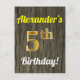 Carte Postale Faux Wood, Faux Gold 5e Anniversaire & Nom personn