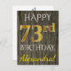 Carte Postale Faux Wood, Faux Gold 73e anniversaire + Nom person