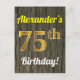 Carte Postale Faux Wood, Faux Gold 75e Anniversaire & Nom person