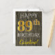 Carte Postale Faux Wood, Faux Gold 89e anniversaire + Nom person