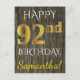 Carte Postale Faux Wood, Faux Gold 92e anniversaire + Nom person
