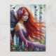 Carte Postale Fée de cheveux rouges dans la forêt de bouleaux de