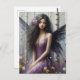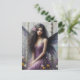 Une fée en robe violette se dresse dans une belle forêt de bouleaux