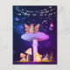Cartes postale fantastique de champignon avec une fée et une souris mignonne.