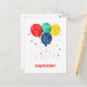 Cette carte postale présente une image de fête de ballons et de confettis, avec le mot "Félicitations !"