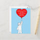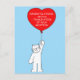 Un grand chat blanc moelleux tenant un gros ballon rouge avec les mots "Félicitations pour avoir finalisé votre adoption" sur lui.
