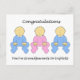 Deux bébés-caricatures, deux garçons et une fille, se sont dressés contre un arrière - plan blanc. Les mots "Félicitations, vous êtes grands-parents pour les triplés !" accompagnent l'image.