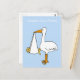 Une cigogne géante tient un chaton gingembre dans une feuille, suspendue à son bec. Le mot "Félicitations" est au-dessus de l'image.