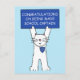 Dessin d'un grand chat blanc tenant une pancarte qui dit "Félicitations d'être devenu capitaine de l'école".
