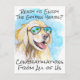 Carte de félicitations de retraite moderne et mignonne avec un golden retriever drôle sur une plage tropicale. Création originale issue de l'une de nos aquarelles peintes à la main.