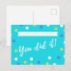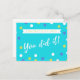 Fond bleu vif avec des confettis verts lime, bleus et blancs à pois