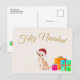 Feliz Navidad Bright Carte postale de Noël ou de Noël avec un Chihuahua dans un chapeau de Père Noël Changez facilement les informations pour vous. Un accueil de saison amusant et lumineux.