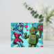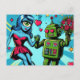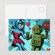 Carte Postale Femme Alien bleue et robot vert