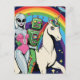 Carte Postale Femme Alien et robot vert amoureux de la licorne