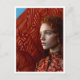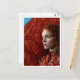 Carte Postale Femme aux cheveux rouges par un tableau de chevaux