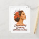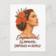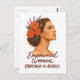 Une femme avec des roses et de la lavande dans les cheveux regarde avec confiance sur le côté. Le texte "Empower Women Empower the World" est affiché avec élégance.