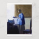 Johannes Vermeer (Octobre 1632 - Décembre 1675), dans l'original néerlandais Jan Vermeer van Delft, était un peintre de l'époque baroque hollandaise qui se spécialisait dans les scènes intérieures intérieures de la vie de classe moyenne. Au cours de sa vie, il a été un peintre de genre provincial modérément réussi, reconnu à Delft et à La Haye. Néanmoins, il a produit relativement peu de tableaux et n'était évidemment pas riche, laissant sa femme et ses enfants endettés à sa mort. Vermeer travaillait lentement et avec grand soin, et utilisait fréquemment des pigments très coûteux. Il est particulièrement réputé pour son traitement magistral et son utilisation de la lumière dans son travail. "Presque tous ses tableaux, écrivait Hans Koningsberger, sont apparemment placés dans deux petites pièces de sa maison de Delft ; ils présentent les mêmes meubles et décorations dans divers arrangements et ils représentent souvent les mêmes personnes, surtout des femmes." Sa modeste célébrité a cédé la place à l'obscurité après sa mort. Il a été à peine mentionné dans le principal livre source d'Arnold Houbraken sur la peinture hollandaise du 17ème siècle (Grand Théâtre des Peintres hollandais et des Artistes femmes) et a donc été omis des enquêtes ultérieures sur l'art hollandais pendant près de deux siècles. Au 19ème siècle, Vermeer fut redécouvert par Gustav Friedrich Waagen et Théophile Thoré-Bürger, qui publièrent un essai qui lui attribuait 66 photos, bien que seulement 34 peintures lui soient aujourd'hui attribuées par tous. Depuis lors, la réputation de Vermeer s'est développée et il est maintenant reconnu comme l'un des plus grands peintres de l'âge d'or hollandais. Citation : Wikipedia