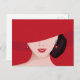 Un design d'art rétro d'une femme avec un casquette rouge, boucles d'oreilles rouges et lèvres rouges. Image d'un domaine public.