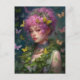 Une adorable femme aux cheveux violets recouverte de lierre et de papillons IA générée