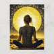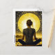 Jolie carte postale spirituelle. L'art mystique de l'air montre une scène éthérée d'une femme méditant avant une pleine lune, une nuit étoilée.