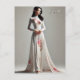La femme porte un Ao Dai, une tunique longue et fluide, élégamment ajustée à son cadre, avec de hauts bouts de part et d'autre. L'Ao Dai est en tissu délicat, orné de motifs floraux complexes et de couleurs vives, symbolisant le patrimoine culturel et la grâce. Sous la tunique, elle porte des pantalons amples qui complètent l'élégance de la tenue. Sa posture dégage confiance et calme, et l'arrière - plan claire met en valeur sa beauté et le raffinement de la tenue traditionnelle vietnamienne.