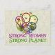 Un arc-en-ciel de symboles féminins, une pleine lune, la nature, et les mots "Femmes fortes, planète forte" envoie un message que des femmes fortes qui travaillent ensemble pour donner du pouvoir à toutes les femmes peuvent changer le monde et en faire une planète meilleure.