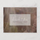 Une carte postale de remerciement mariage, à la fois rustique et élégante, avec un arrière - plan en fer recouvert d'organza doux comme la dentelle et une fleur éthérée. Personnalisez en ajoutant le nom de la mariée et du marié ainsi que les détails du mariage.
