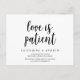 Il s'agit de la fête de mariage ou toute invitation de célébration Rescheduled (reporté / report) carte postale (l'amour est patient), dans le design rustique moderne de ferme thème, Police noire. C'est la meilleure façon de faire en sorte que l'événement replanifie le faire-part à votre famille et à vos amis. #TeeshaDerrick