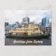 Salutations de Sydney carte postale avec le célèbre Sydney Ferry vert et or à King Street Wharf près de Darling Harbour, Sydney, Australie - carte postale personnalisable.