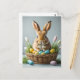Cette carte postale super adorable présente le plus beau petit lapin posé dans un panier de Pâques rempli d'oeufs. Cette carte postale de vacances serait idéale pour les amis, la famille et les collègues.