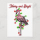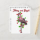 Carte Postale Festive holiday Flamingo red green Xmas lights