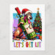Wrapped in colorful lights and holiday cheer, this playful dog embraces the season with a wine bottle and a wink. A decorated tree, scattered ornaments, and bold “Let’s Get Lit” text make this scene a merry celebration of holiday fun.