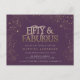 Carton d'invitation fête d'anniversaire 50 ans et fabuleuse paillettes or violet. Texte de style moderne monochrome. Fait partie d'une collection.