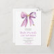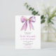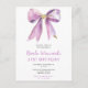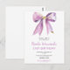 Jolie invitation de fête d'anniversaire sur carte postale avec un ruban à nœud coquette violet. Les mots peuvent être modifiés pour s'adapter à vos propres détails ou exigences