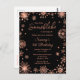Cette carte d'invitation élégante et glamour présente des flocons de neige en faux or rose aquarelle et des étincelles sur fond noir. Elle est parfaite pour une fête d'anniversaire sur le thème de l'hiver ou de Noël.