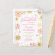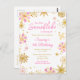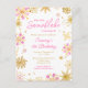Cette élégante et somptueuse carte d'invitation postale présente des flocons de neige rose et or en faux paillettes aquarelle et des étincelles sur fond blanc. Elle est parfaite pour une fête d'anniversaire sur le thème de l'hiver ou de Noël.