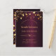 Une invitation glamour pour une fête d'anniversaire de 50ème (ou tout âge). Un arrière - plan à l'allure métallique bordeaux foncé décoré de faux étoiles dorées. Personnalisez et ajoutez un nom et des détails du parti. Le nom est écrit avec un script de style moderne écrit à la main. Texte de couleur dorée. Retour : arrière - plan bordeaux et étoiles dorées. Cette carte est également disponible dans notre magasin sans le bordeaux et les étoiles sur le dos, juste le design de carte postale ordinaire.
