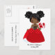 Invitation à une fête d'anniversaire avec une petite princesse noire en robe coccinelle et une typographie coccinelle mignonne au verso.
