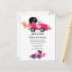 Invitation personnalisable de fête d'anniversaire de fille en drive through selon les spécificités de votre événement.