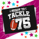 Cette conception d'anniversaire de football est parfaite pour une fête d'anniversaire sur le thème de football pour célébrer les 75 ans ! Comprend une citation de football pour le 75e anniversaire 'Prêt à s'attaquer à 75' avec un graphique de football. Parfait pour quiconque aime le football et qui a 75 ans !