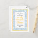 Douce et charmante comme la maison de grand-mère, cette invitation de fête d'anniversaire de l'oie idiote carte postale présente une palette de couleurs bleu clair, blanc et jaune avec une bordure dessinée à la main de petites oies blanches et de tulipes, ce qui en fait un choix facile et économique pour votre petit le jour de son anniversaire.