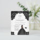 Cette invitation de fête d'anniversaire élégante et glamour présente une belle princesse à la peau foncée dans une robe de bal noire. Le texte combine une écriture manuscrite et des polices modernes sans serif pour un look classe et sophistiqué. Les arrangements floraux, le papillon et les confettis argentés créent le mélange parfait de rustique et de chic.