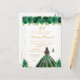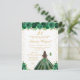 Cette invitation de fête d'anniversaire élégante et glamour présente une belle princesse aux cheveux bruns et à la peau claire dans une robe de bal verte. Le texte combine une écriture manuscrite et des polices modernes sans serif pour un look classe et sophistiqué. Les arrangements floraux, les papillons et les confettis dorés créent le mélange parfait de rustique et de chic.