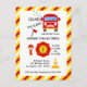 Invitation d'anniversaire de pompier avec une mise en page noire et blanche simpliste personnalisable selon les spécificités de votre événement. Graphiques par PremiumClipart.
