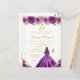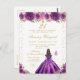 Cette invitation de fête d'anniversaire élégante et glamour présente une belle princesse aux cheveux bruns et à la peau claire dans une robe de bal violette foncée. Le texte combine une écriture manuscrite et des polices modernes sans serif pour un look classe et sophistiqué. Les arrangements floraux, les papillons et les confettis dorés créent le mélange parfait de rustique et de chic. Graphiques par www.etsy.com/uk/shop/SunflowerDayLove
