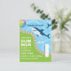 Carte d'invitation personnalisée pour une fête d'anniversaire au bord de la piscine avec attaque de requins, personnalisable selon les détails de votre événement.